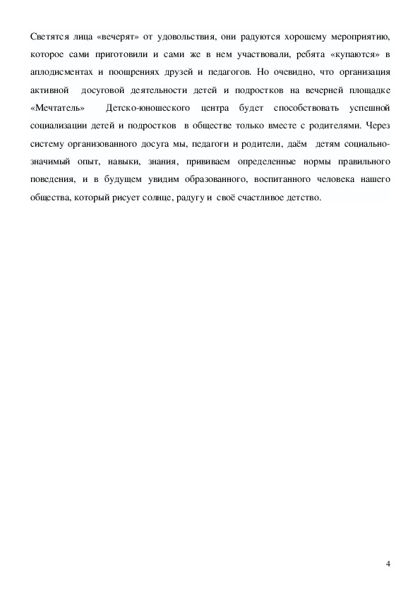 организованный вечерний досуг для детей и подростков. То есть, вечерами к нам в