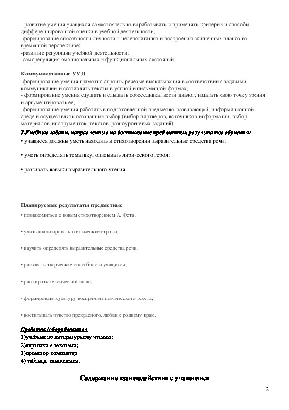 Технологическая карта урока в соответствии с требованиями ФГОС
