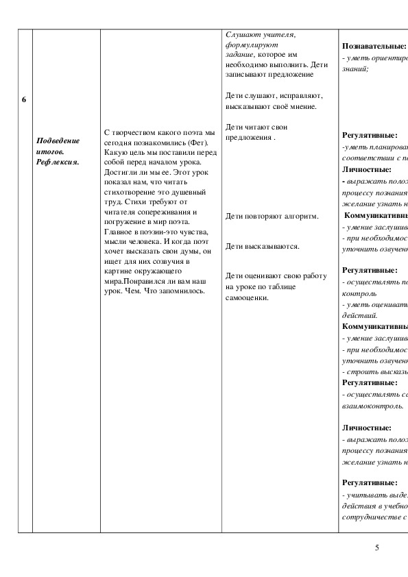 креативных, рефлексивных, обучающимися 4 класса в предметной области «Литературное чтение»