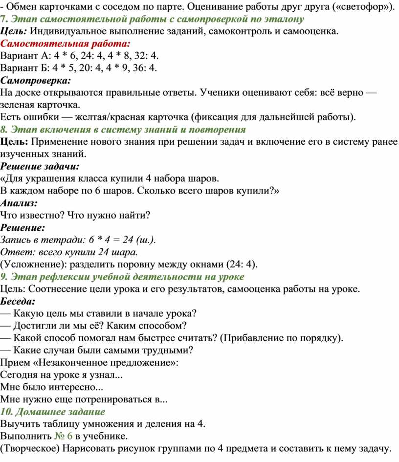 6. Этап первичного закрепления с проговариванием во внешней речи
