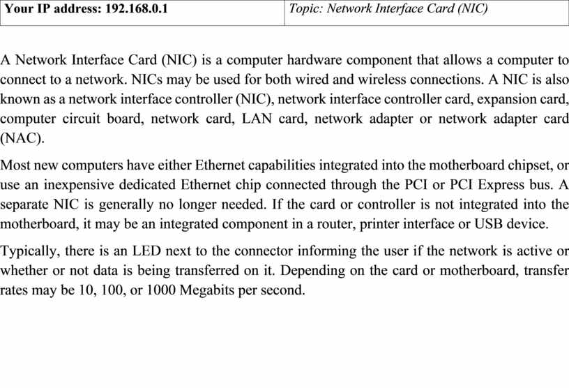 Topic: Network Interface Card (NIC) |