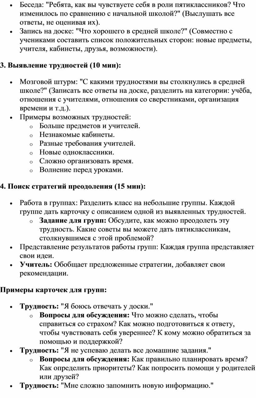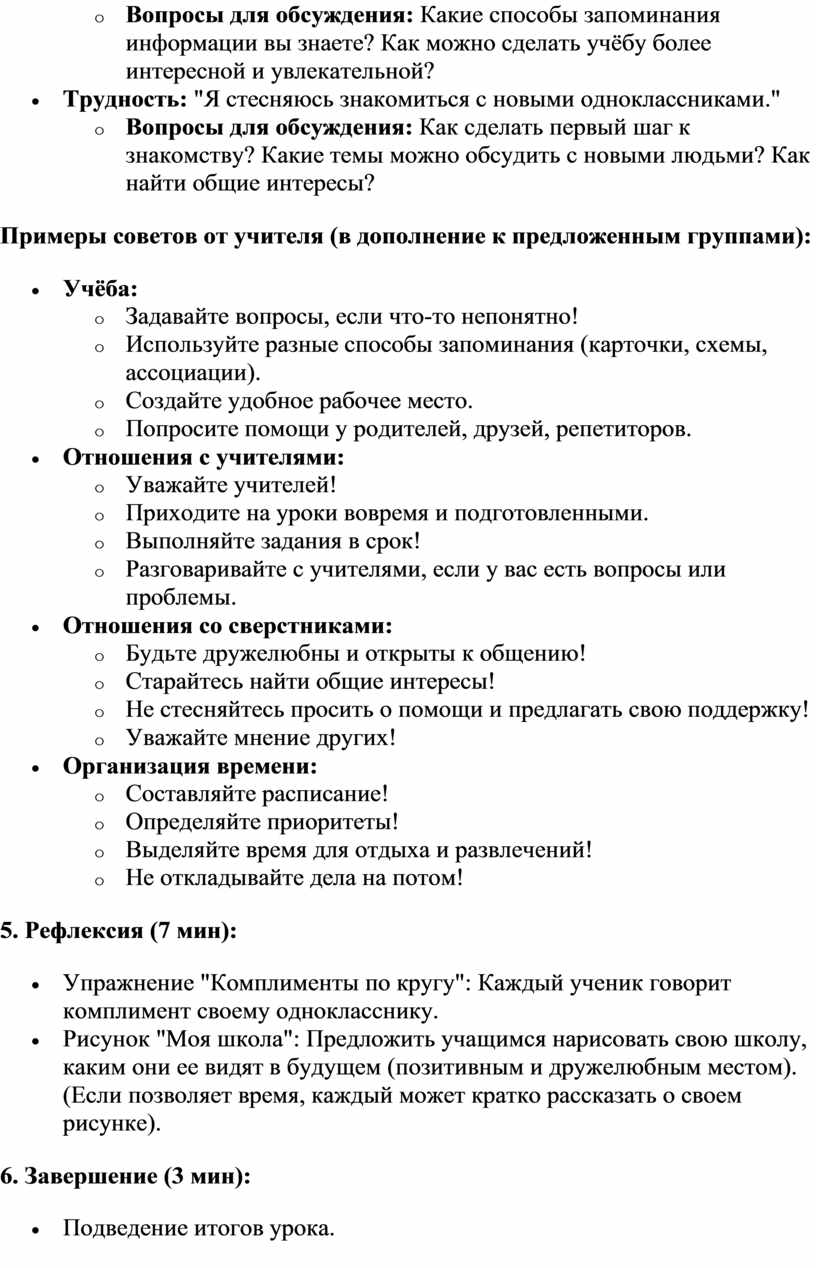 сторон: новые предметы, учителя, кабинеты, друзья, возможности).