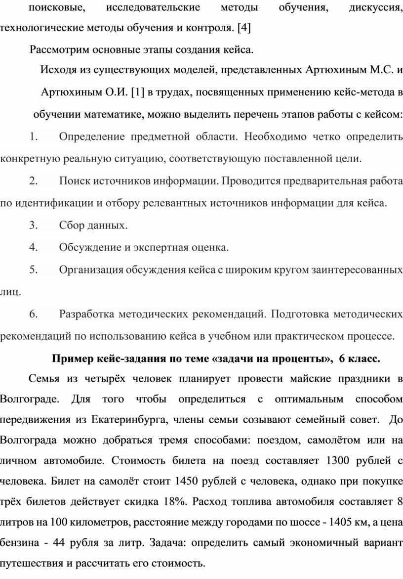 Исходя из существующих моделей, представленных Артюхиным М.С. и Артюхиным О.И. [1] в трудах, посвященных применению кейс-метода в обучении математике, можно выделить перечень этапов работы с кейсом: