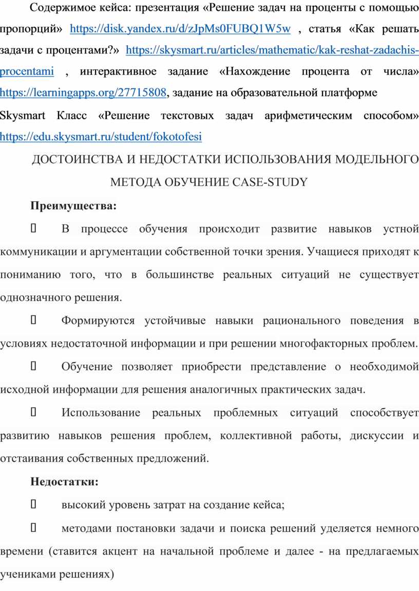 ДОСТОИНСТВА И НЕДОСТАТКИ ИСПОЛЬЗОВАНИЯ МОДЕЛЬНОГО МЕТОДА ОБУЧЕНИЕ CASE-STUDY