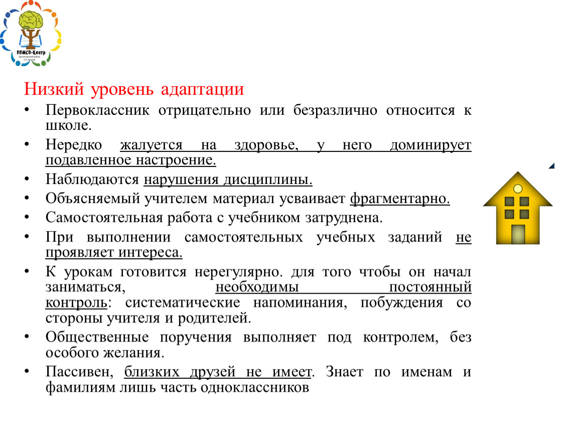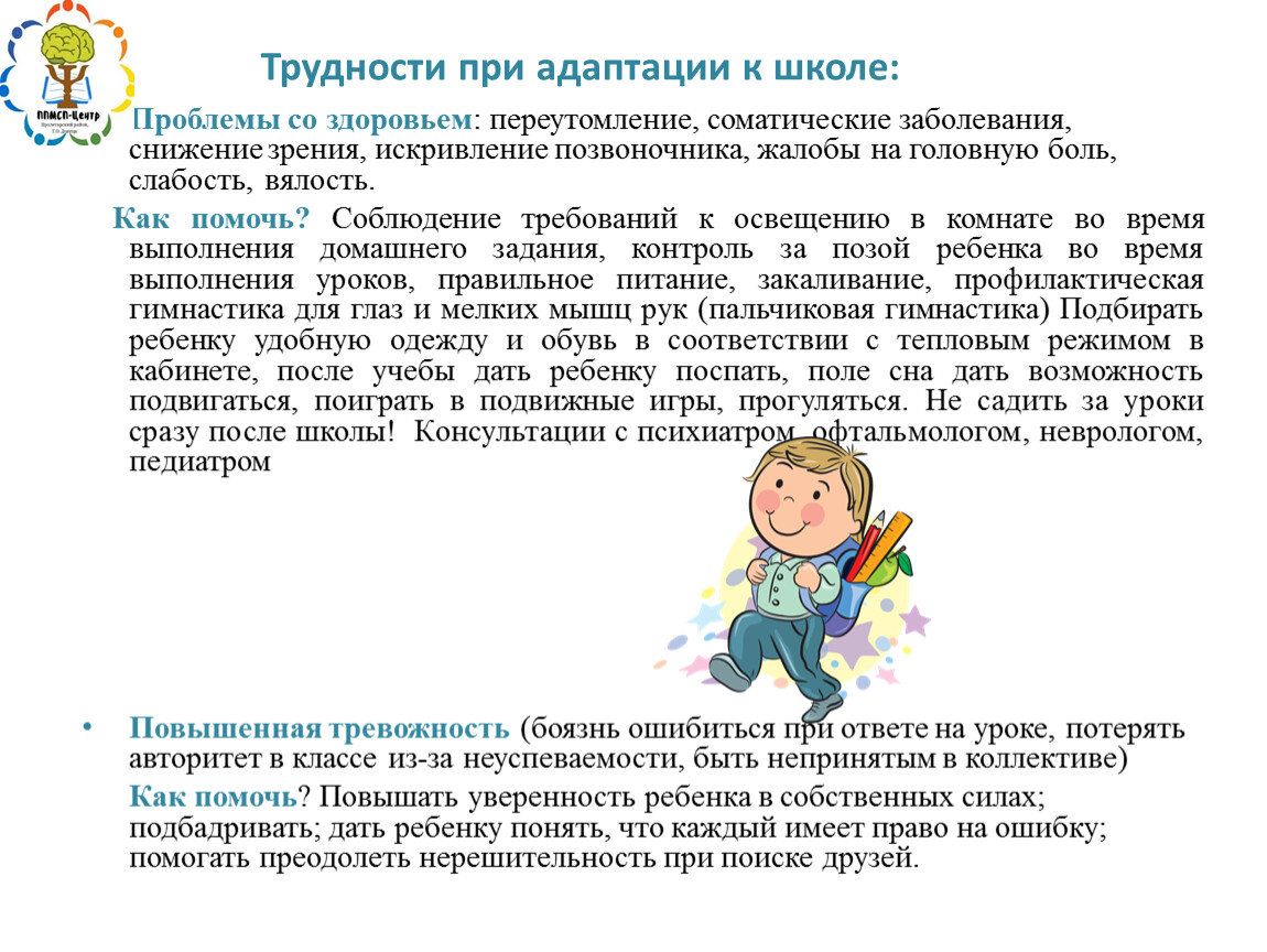 Трудности при адаптации к школе: