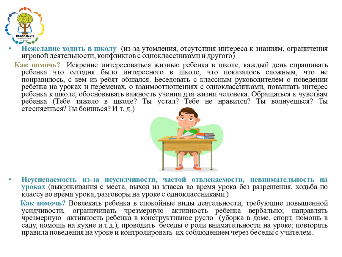 Повышенная тревожность (боязнь ошибиться при ответе на уроке, потерять авторитет в классе из-за неуспеваемости, быть непринятым в коллективе)