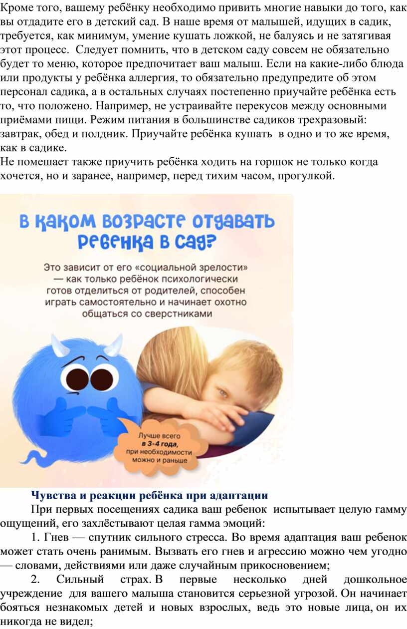 Чувства и реакции ребёнка при адаптации