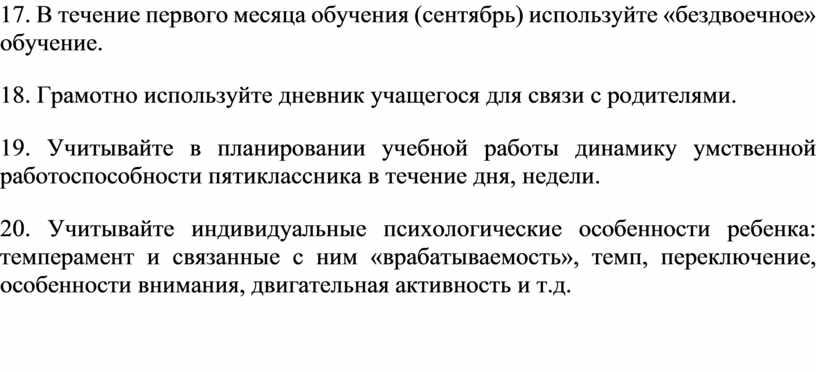 17. В течение первого месяца обучения (сентябрь) используйте «бездвоечное» обучение.