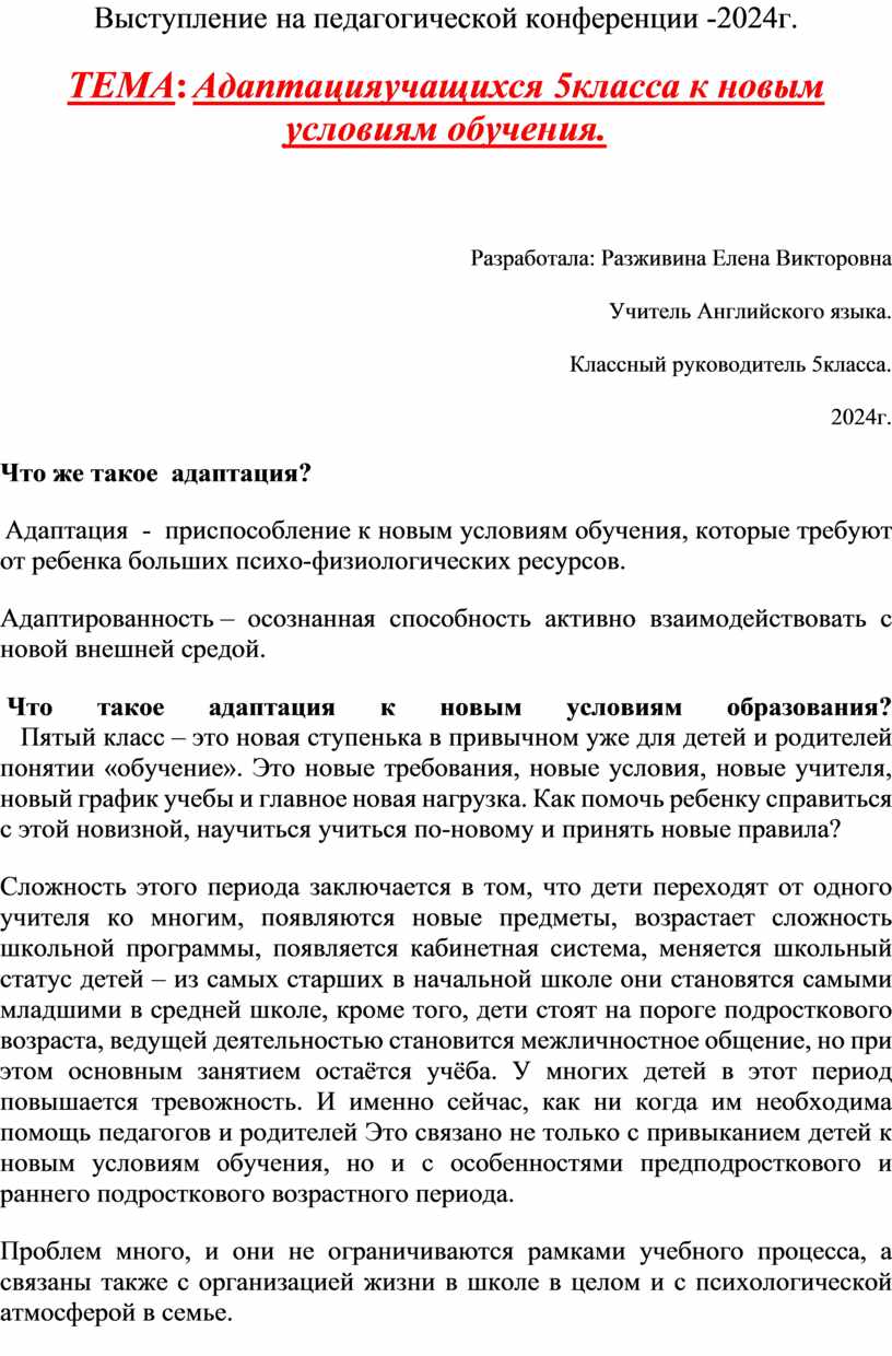 ТЕМА: Адаптацияучащихся 5класса к новым условиям обучения.