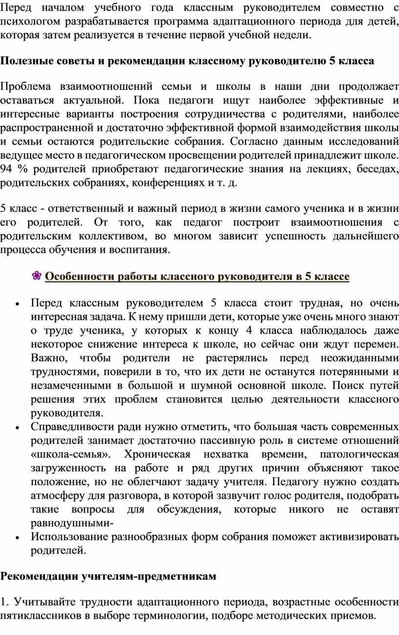 5 класс - ответственный и важный период в жизни самого ученика и в жизни его родителей. От того, как педагог построит взаимоотношения с родительским коллективом, во многом зависит успешность дальнейшего процесса обучения и воспитания.