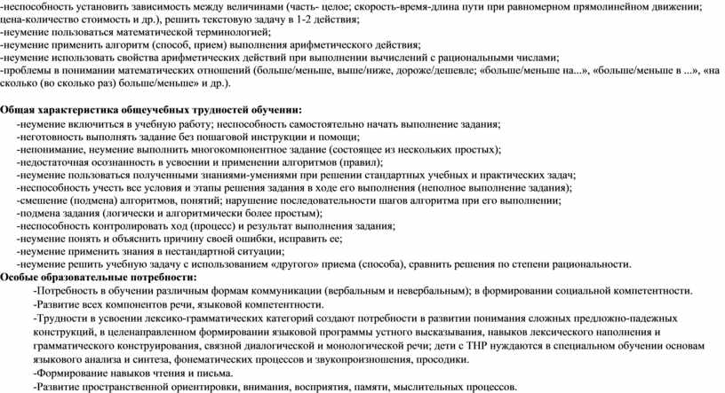 арифметических задач. Характерно для тяжёлых нарушений речи общее ее
