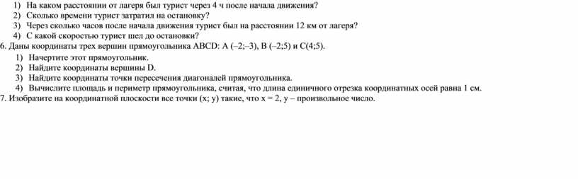 1) На каком расстоянии от лагеря был турист через 4 ч после начала движения?