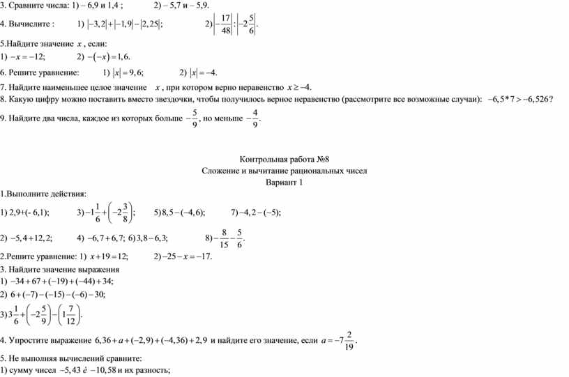 3. Сравните числа: 1) – 6,9 и 1,4 ; 2) – 5,7 и – 5,9.