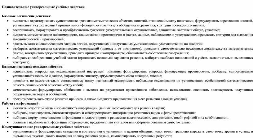 6. выявление в содержании предметных областей универсальных учебных действий и определение условий их формирования в образовательном процессе и жизненно важных ситуациях;