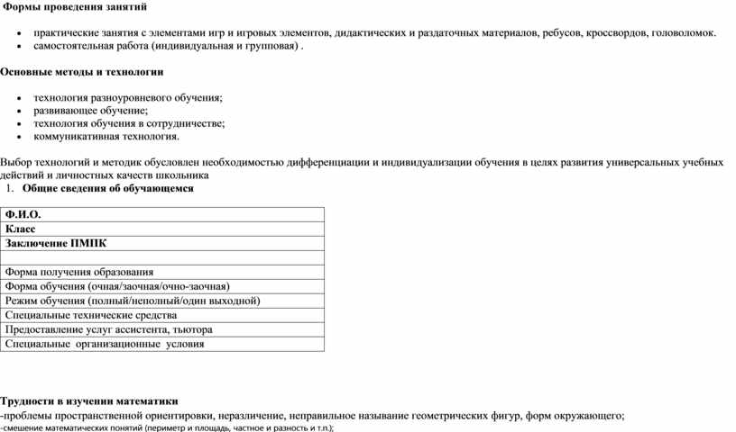 Выбор технологий и методик обусловлен необходимостью дифференциации и индивидуализации обучения в целях развития универсальных учебных действий и личностных качеств школьника
