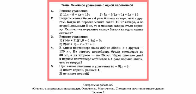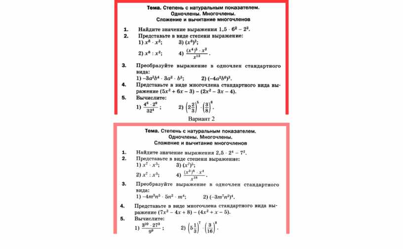 «Степень с натуральным показателем. Одночлены. Многочлены. Сложение и вычитание многочленов»