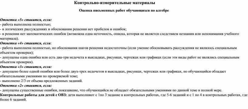 Контрольные работы для детей с ОВЗ: дети выполняют с 1по 3 задание в контрольных работах, где 5-6 заданий и с 1 по 4 в контрольных работах, где более 6 заданий.