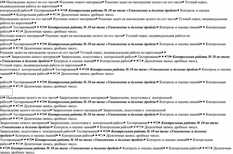Контрольная работа № 10 по теме «Умножение и деление дробей» |