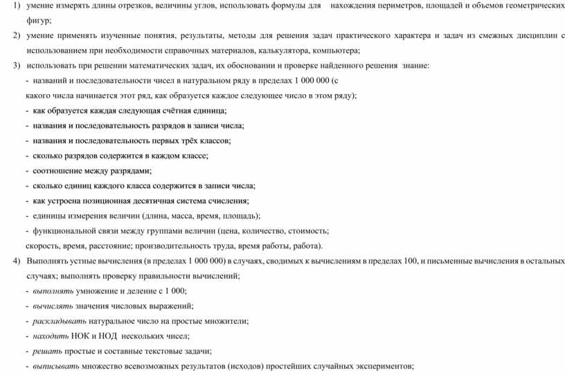 3) развитие представлений о числе и числовых системах от натуральных до действительных чисел; овладение навыками устных, письменных, инструментальных вычислений;