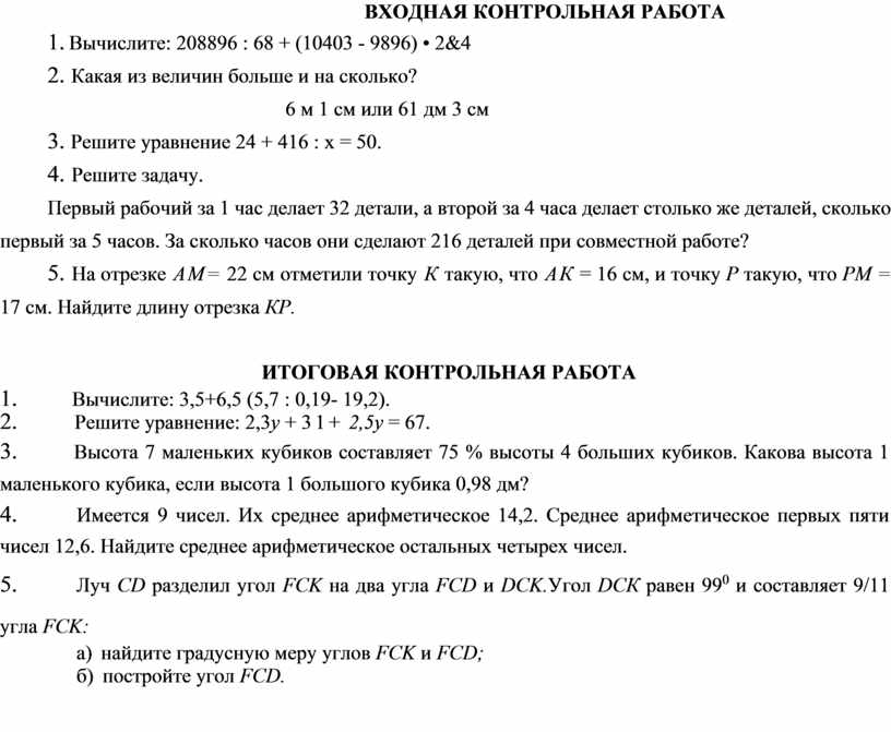 Контрольная работа №12 по теме «Умножение и деление десятичных дробей на натуральные числа» |