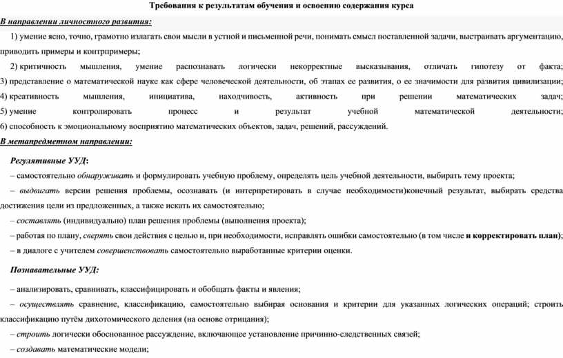 • формирование интеллектуальной честности и объективности, способности к преодолению мыслительных стереотипов, вытекающих из обыденного опыта;