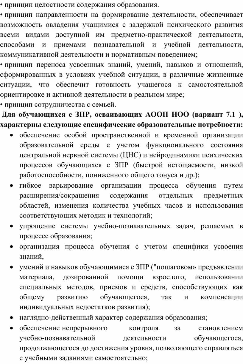 Для обучающихся с ЗПР, осваивающих АООП НОО (вариант 7.1 ), характерны следующие специфические образовательные потребности: