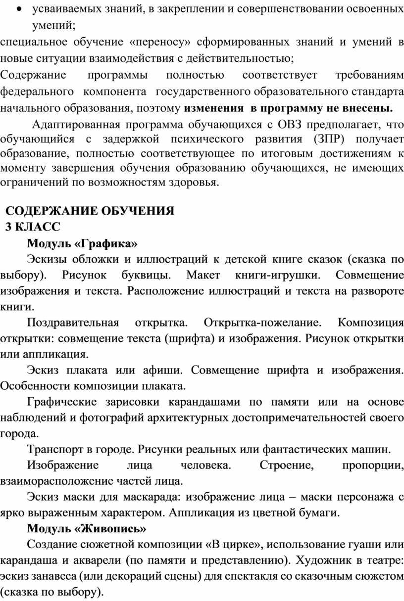 Адаптированная рабочая программа обучающихся с ОВЗ предполагает, что учащийся с задержкой психического развития (ЗПР) получает образование, полностью соответствующее по итоговым достижениям к моменту завершения обучения образованию обучающихся, не имеющих ограничений по возможностям здоровья, в те же сроки обучения (1 - 4 классы)