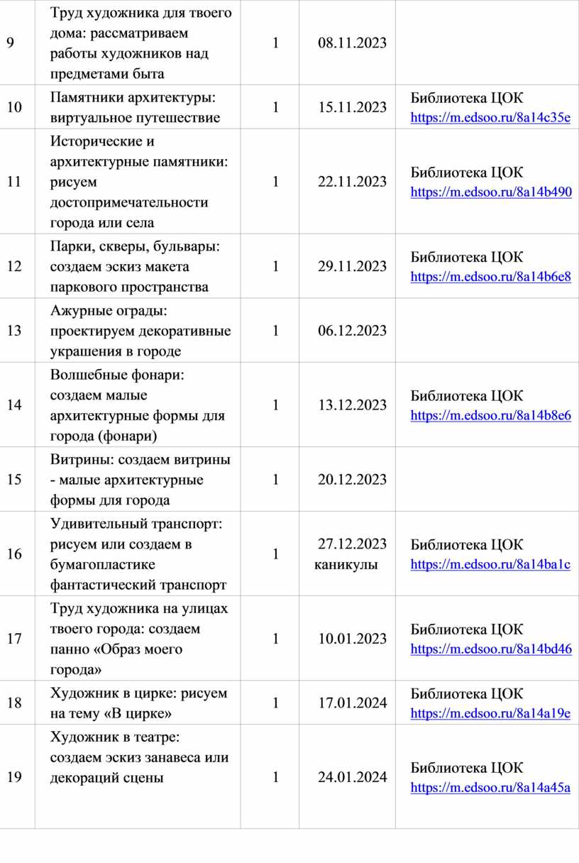 Библиотека ЦОК https://m.edsoo.ru/8a149c3a https://m.edsoo.ru/8a14c890 |