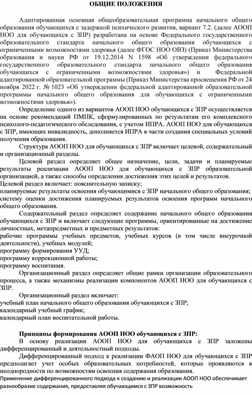 Применение дифференцированного подхода к созданию и реализации АООП НОО обеспечивает разнообразие содержания, предоставляя обучающимся с ЗПР возможность реализовать индивидуальный потенциал развития.