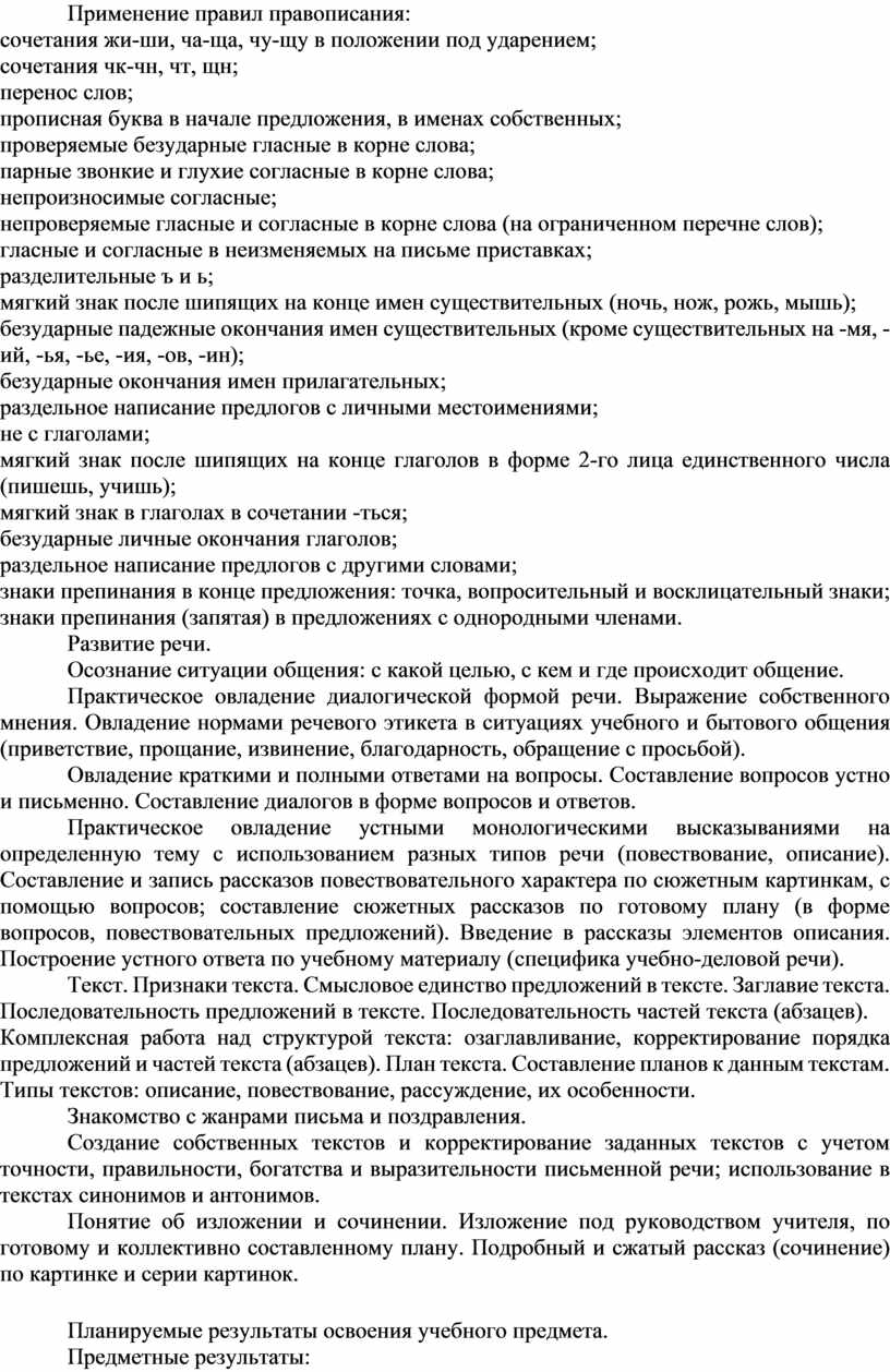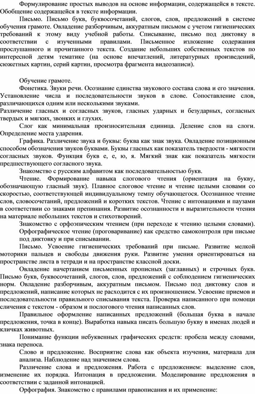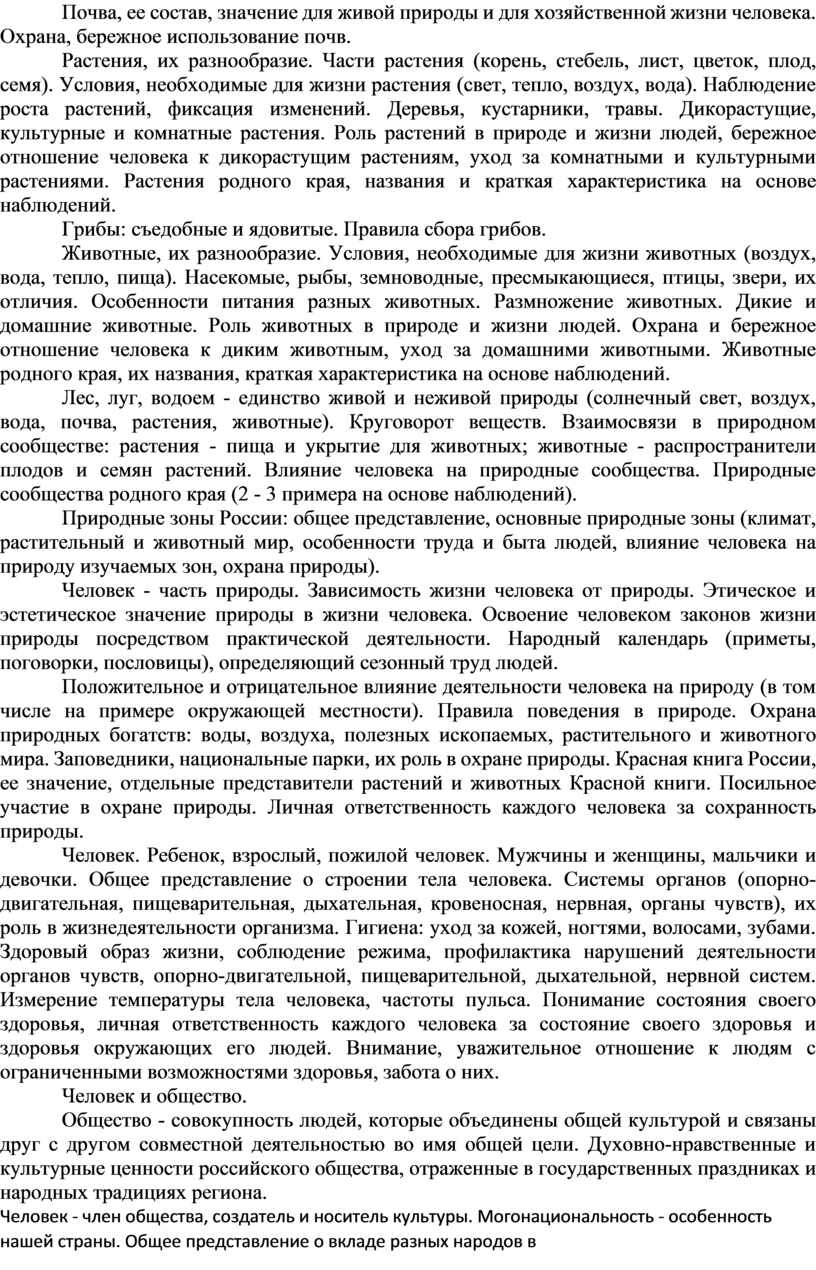 Рабочие программы учебных предметов Русский язык, Литературное чтение, Окружающий мир. программа формирования универсальных учебных действий |