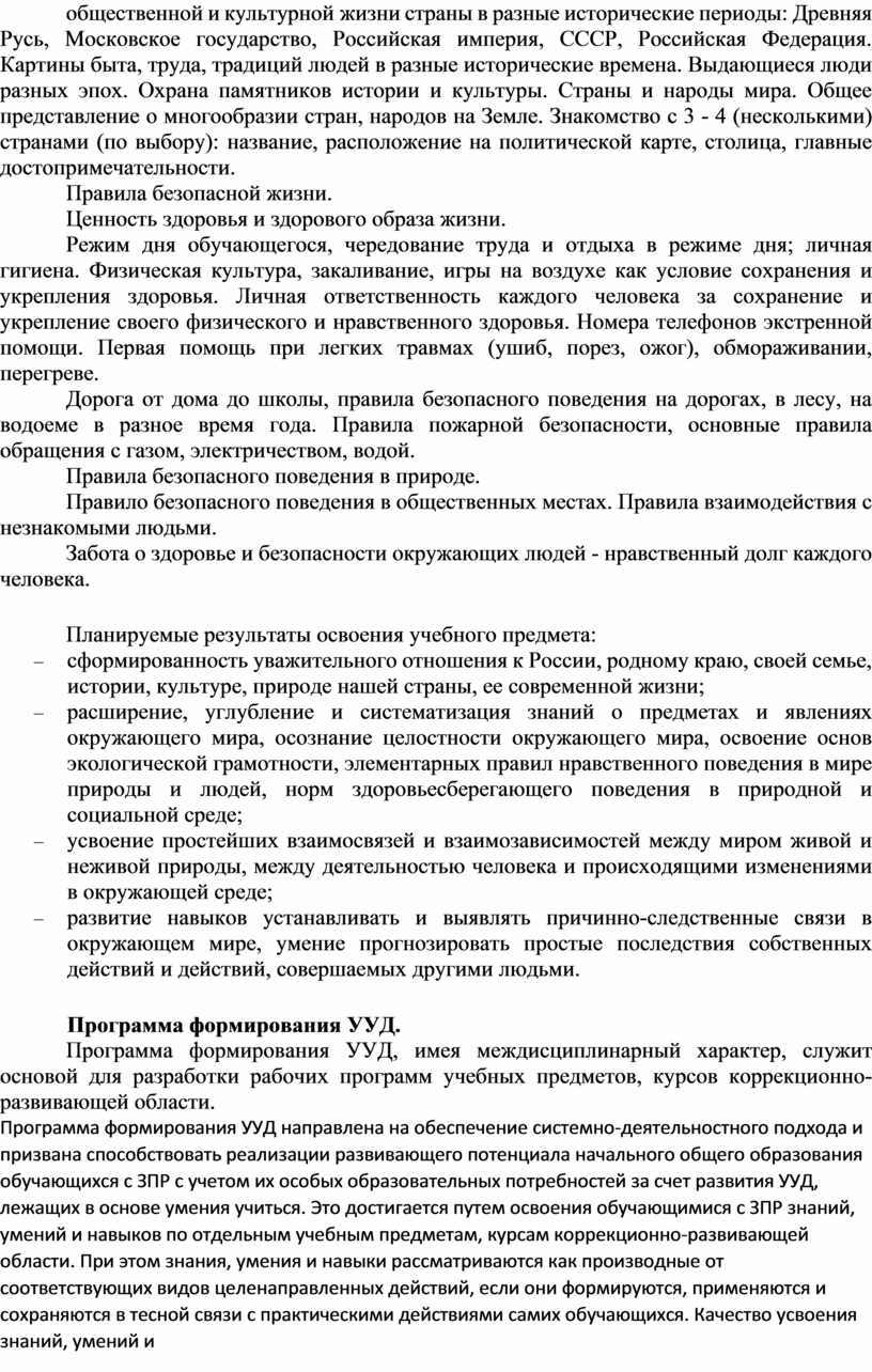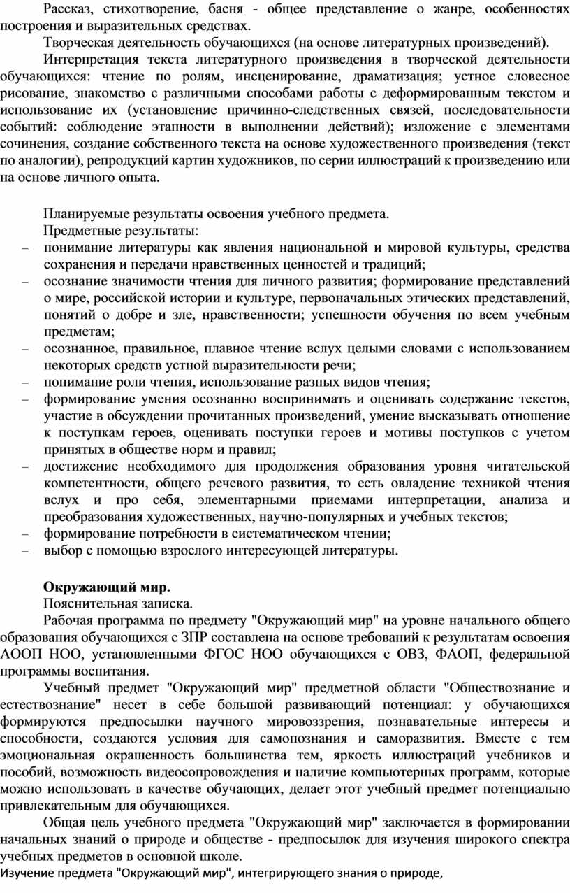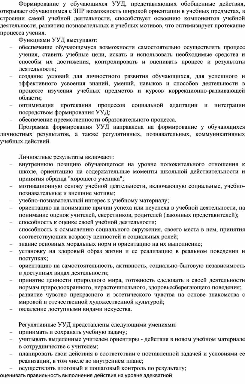 планируемые результаты освоения обучающимися с ЗПР начального общего образования;