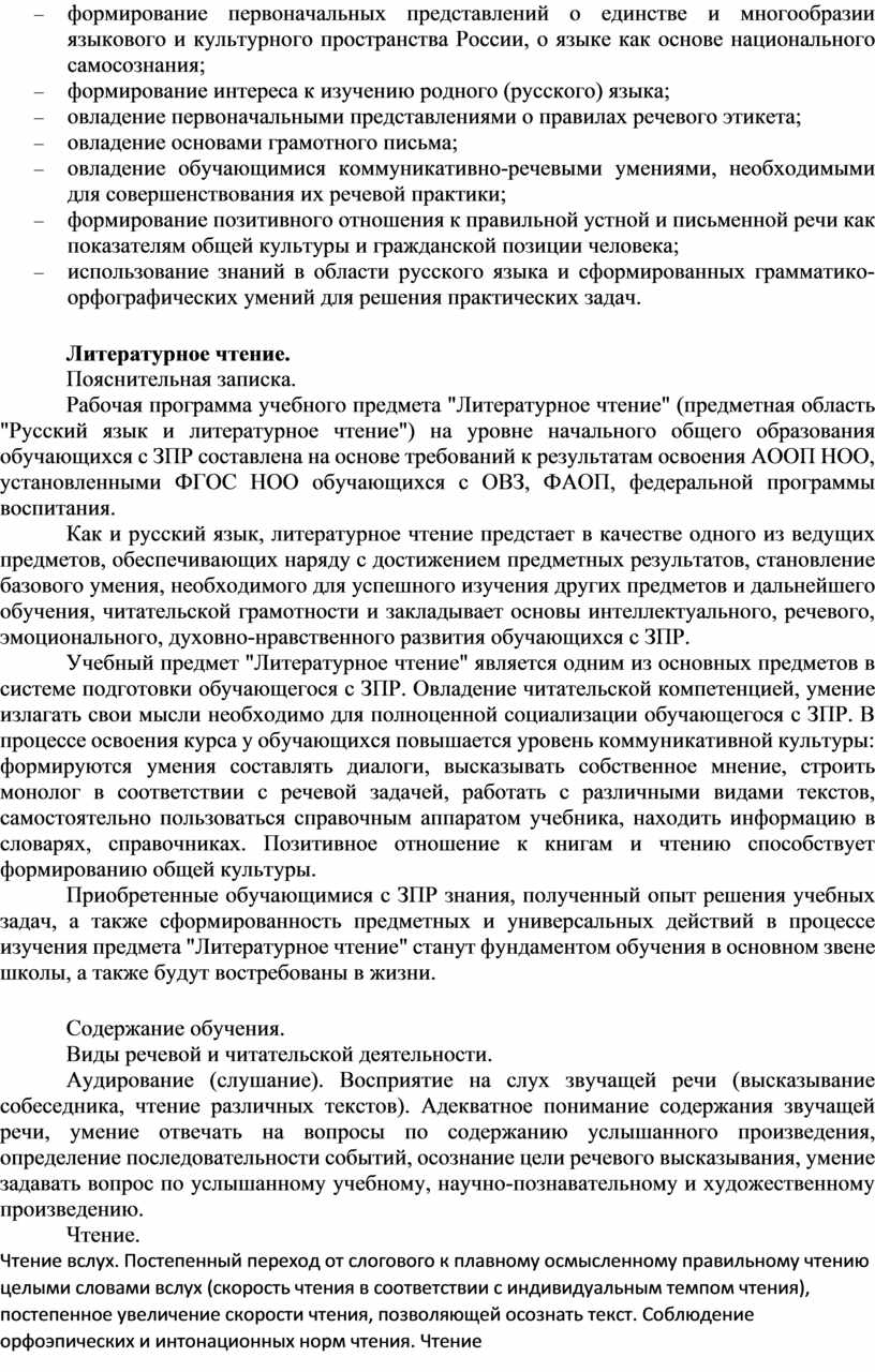 - формирование общей культуры, духовно-нравственное, гражданское, социальное, личностное и интеллектуальное развитие, развитие творческих способностей, сохранение и укрепление здоровья обучающихся с ЗПР;