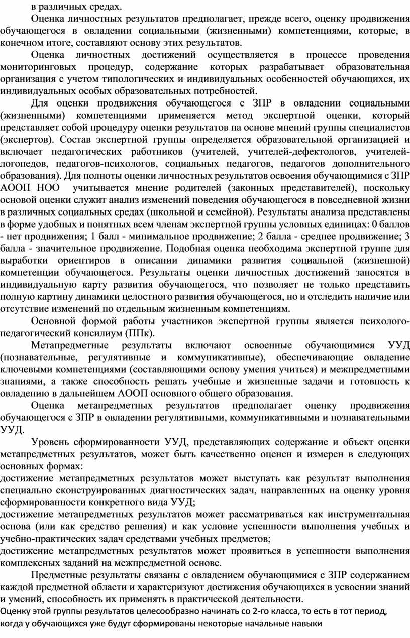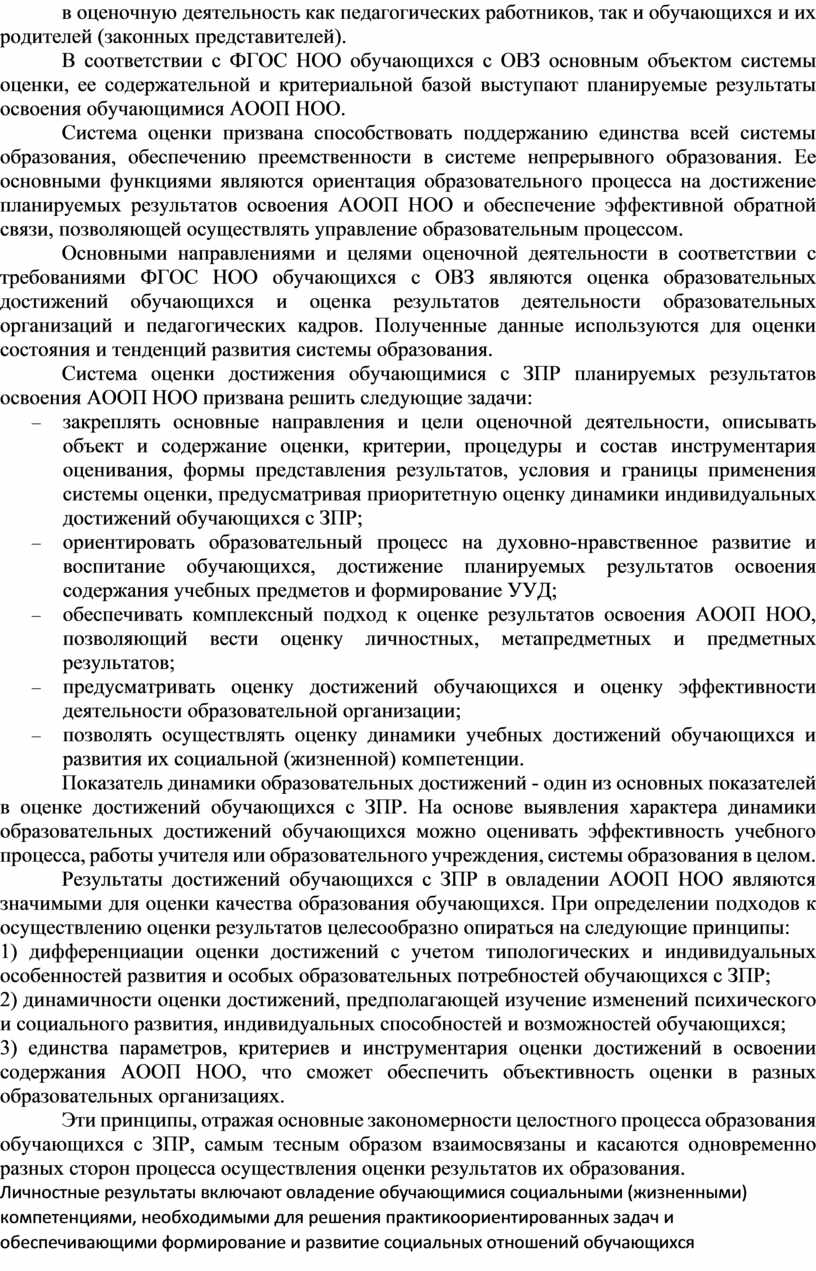 - достижение планируемых результатов освоения АООП НОО для обучающихся с ЗПР, целевых установок, приобретение знаний, умений, навыков, компетенций и компетентностей, определяемых личностными, семейными, общественными, государственными потребностями и возможностями обучающегося с ЗПР, индивидуальными особенностями развития и состояния здоровья;