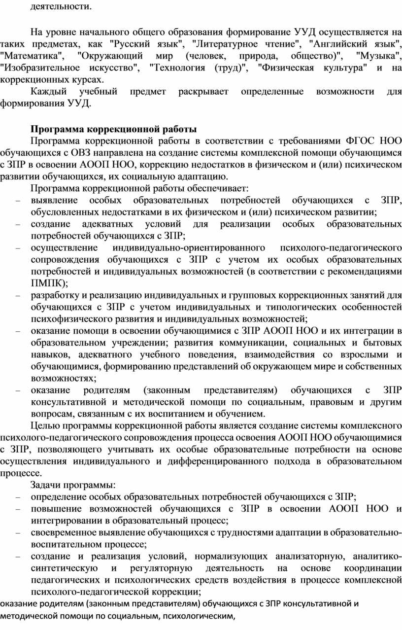 В учебном плане представлены семь предметных областей и коррекционно-развивающая область. Содержание учебных предметов, входящих в состав каждой предметной области, обеспечивает целостное восприятие мира, с учетом особых образовательных потребностей и возможностей обучающихся с ЗПР. Коррекционно-развивающая область включена в структуру учебного плана с целью коррекции недостатков психофизического развития обучающихся.