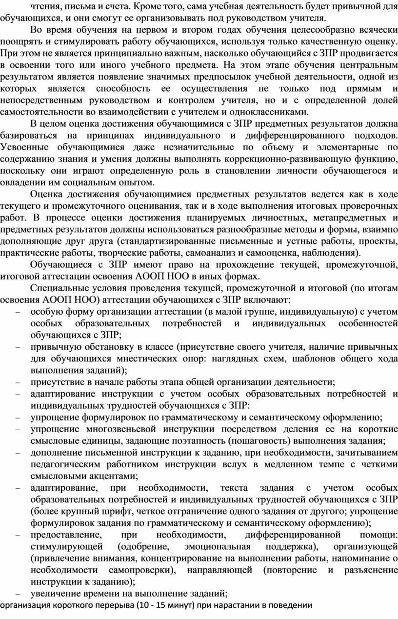 Неспособность обучающегося с ЗПР полноценно освоить отдельный предмет в структуре АООП НОО (вариант 7.2) не должна служить препятствием для продолжения освоения данного варианта программы, поскольку у обучающихся с ЗПР может быть специфическое расстройство чтения, письма, арифметических навыков (дислексия, дисграфия, дискалькулия), а так же выраженные нарушения внимания и работоспособности, препятствующие освоению программы в полном объеме.