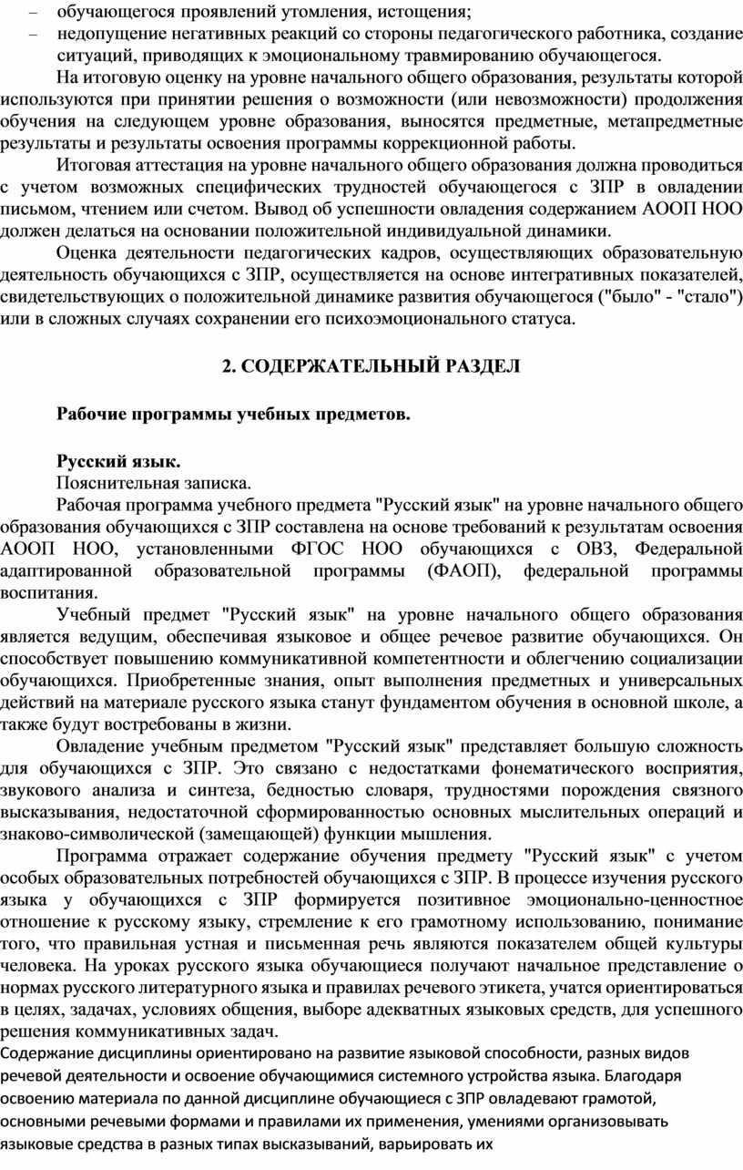 Содержательный раздел определяет содержание начального общего образования обучающихся с ЗПР и включает следующие программы, ориентированные на достижение личностных, метапредметных и предметных результатов: