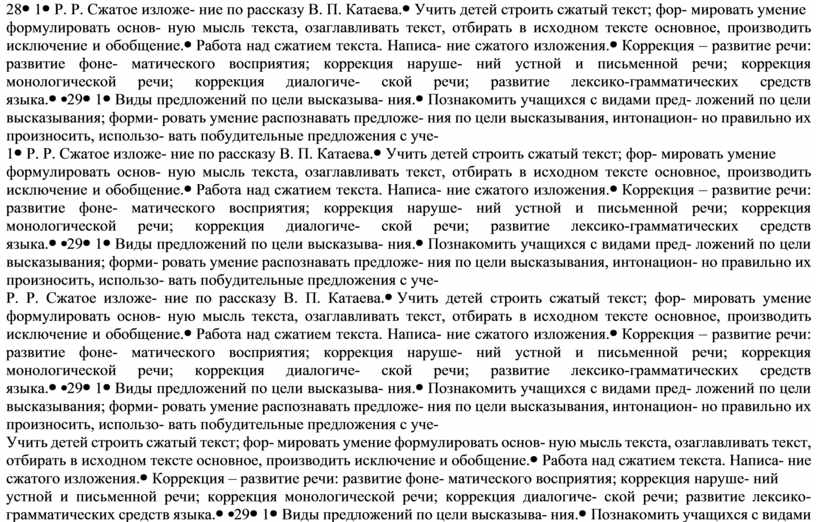 Формирование умения производить ис- ключение и обобщение; сжато излагать главную мысль каждой части исходного текста с изменением формы лица. |