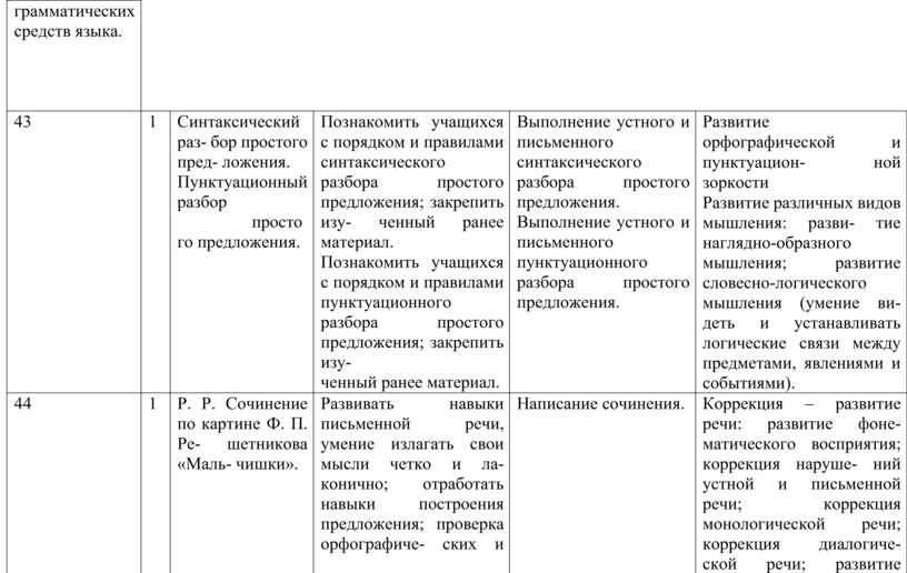 • освоение знаний об устройстве языковой системы и закономерностях еѐ функционирования, развитие способности опознавать, анализировать, сопоставлять, классифицировать и оценивать языковые факты, обогащение активного и потенциального словарного запаса, расширение объѐма используемых в речи грамматических средств, совершенствование орфографической и пунктуационной грамотности, развитие умений стилистически корректного использования лексики фразеологии русского языка;