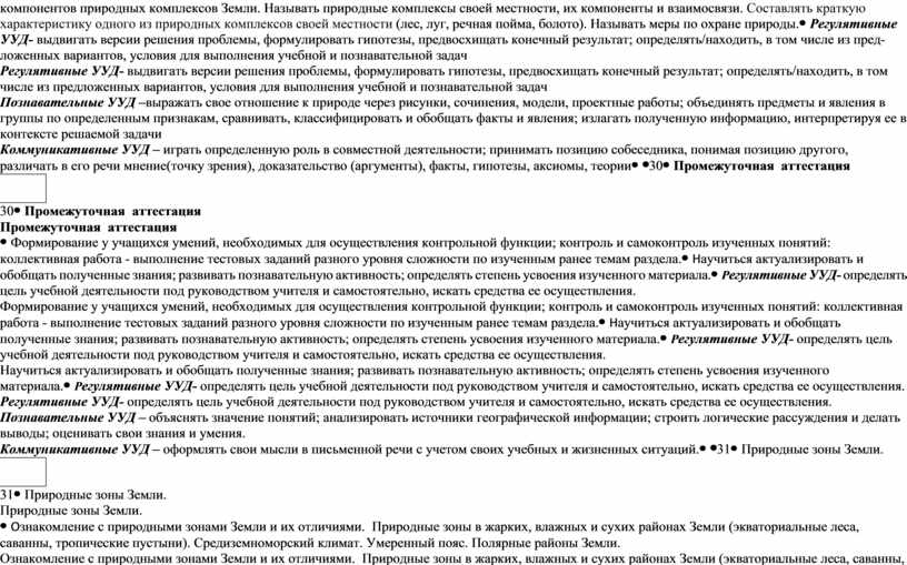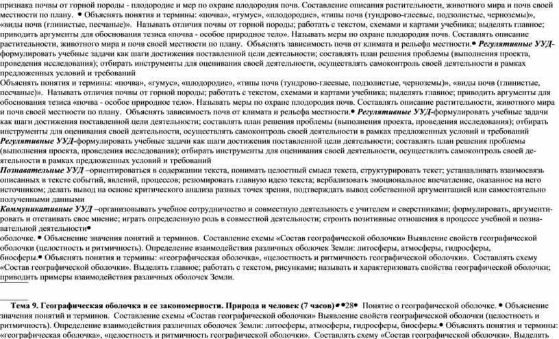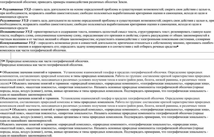 • формирование знаний законов и закономерностей пространственно-временной организации географической оболочки и ее объектов разного масштаба (от материков до мелких ПТК), географических основ охраны природы и рационального природопользования;
