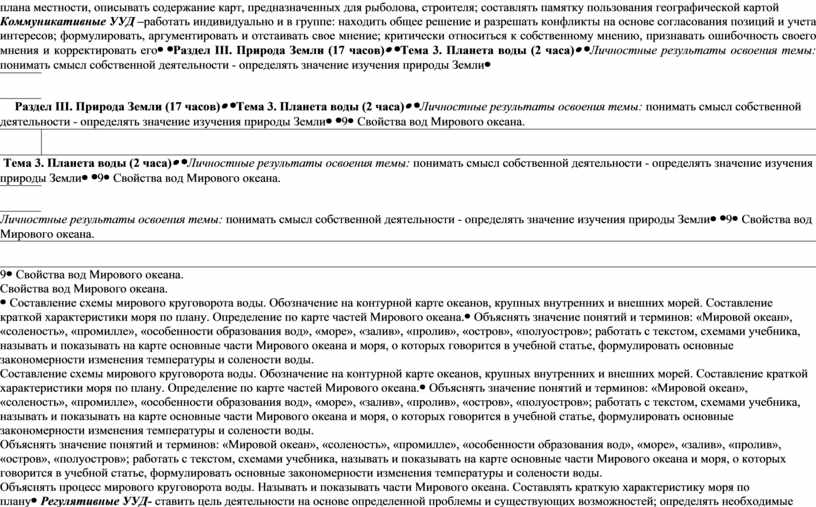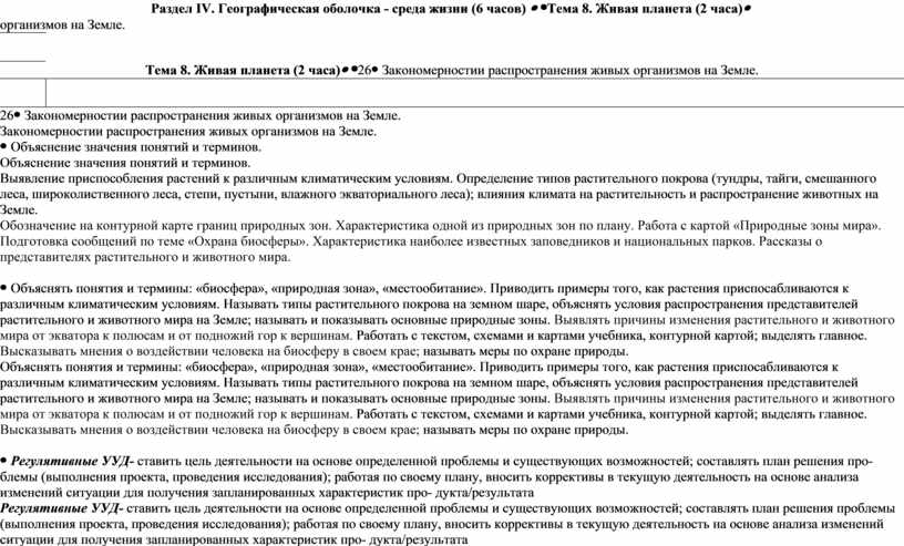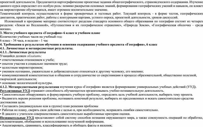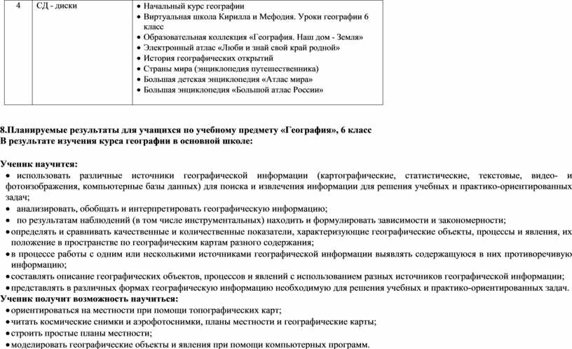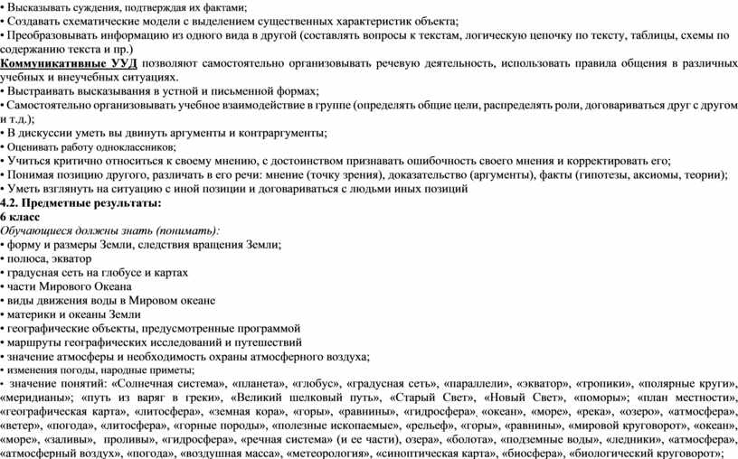 4. Требования к результатам обучения и освоения содержания учебного предмета «География», 6 класс