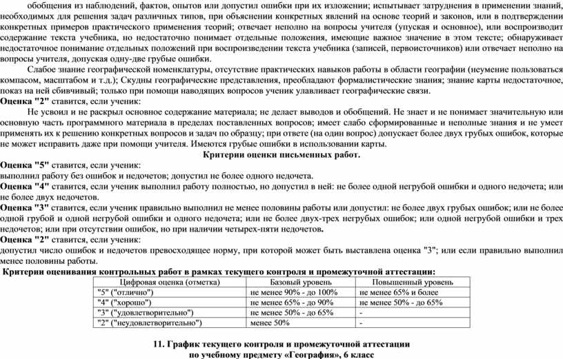 График текущего контроля и промежуточной аттестации по учебному предмету «География», 6 класс…………………………………………………….. |