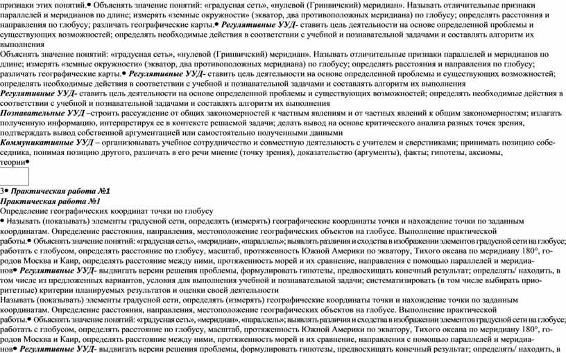 Пр./р. № 1 Определение географических координат точки по глобусу |