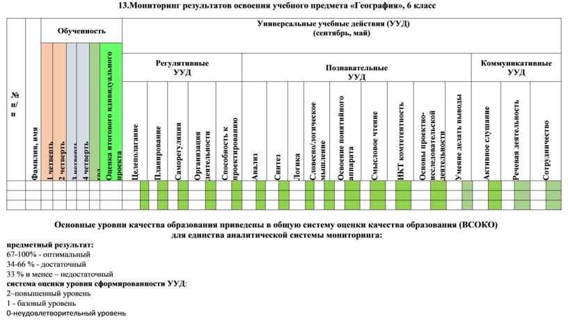 13.Мониторинг результатов освоения учебного предмета «География», 6 класс