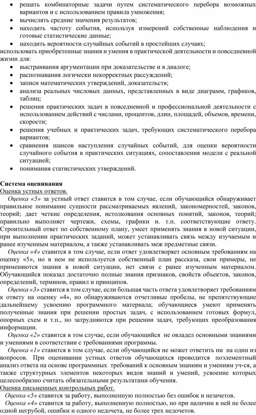Элементы логики, комбинаторики, статистики и теории вероятностей становятся обязательным компонентом школьного образования, усиливающим его прикладное и практическое значение. Этот материал необходим для формирования функциональной грамотности – умений воспринимать и анализировать информацию, представленную в различных формах, понимать вероятностный характер многих реальных зависимостей, производить простейшие вероятностные расчеты. Изучение основ комбинаторики позволит учащемуся осуществлять рассмотрение случаев, перебор и подсчет числа вариантов, в том числе в простейших прикладных задачах.