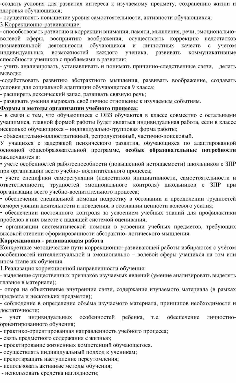 для учащегося с ОВЗ (ЗПР) 9-го класса