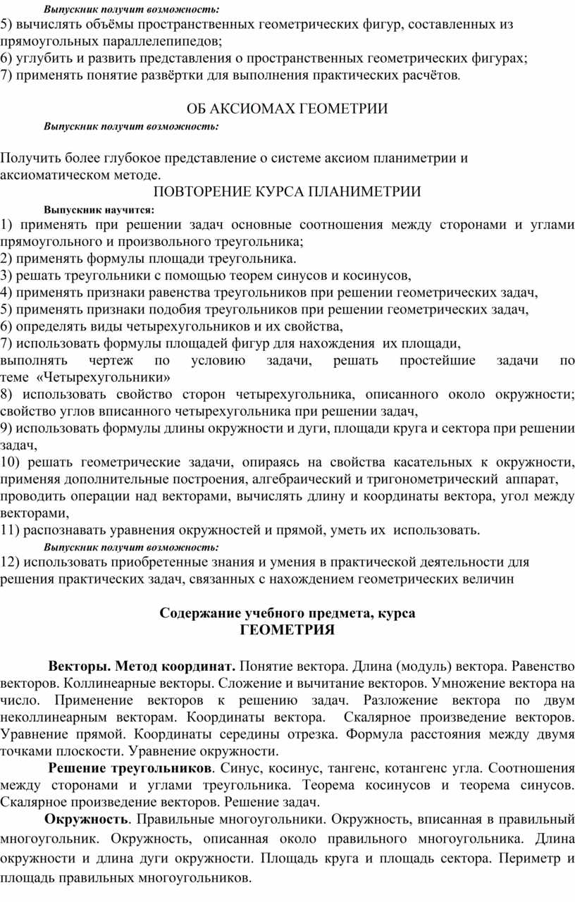 - создавать условия для оптимального уровня овладения обучающимися учебной программы по предмету «Геометрия» в соответствии с их способностями и возможностями;