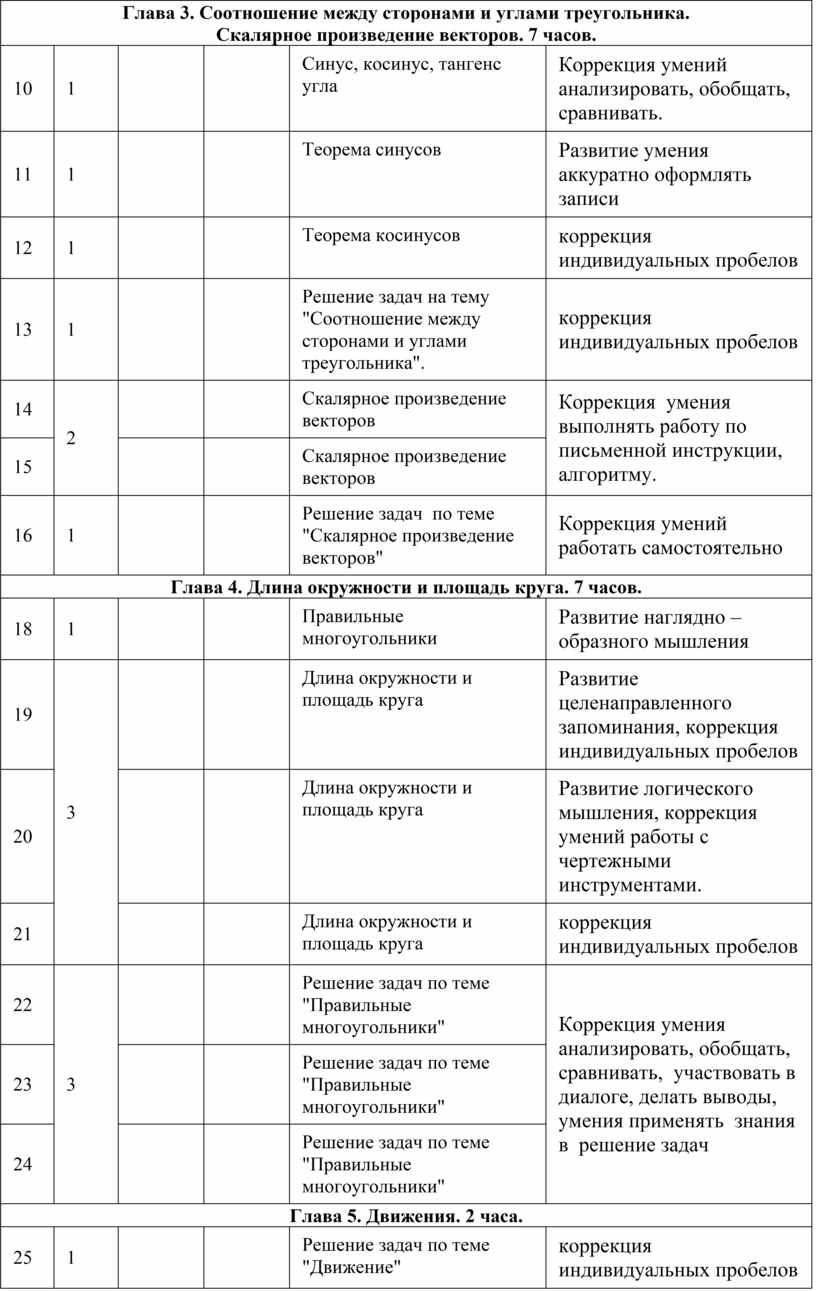 Глава 3. Соотношение между сторонами и углами треугольника. Скалярное произведение векторов. 7 часов. |