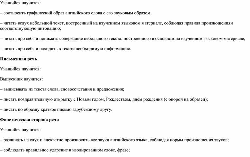-адекватное произношение и различение на слух всех звуков иностранного языка; соблюдение правильного ударения в словах и фразах;