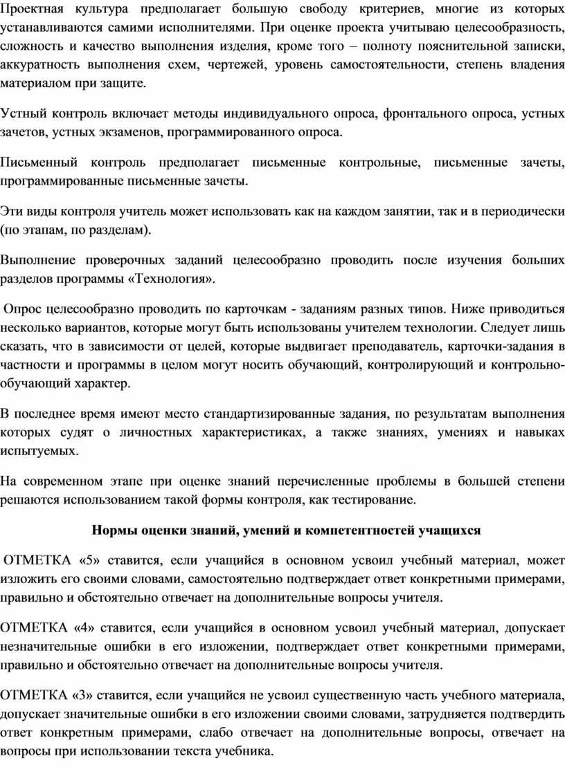 В программе предусмотрено выполнение школьниками творческих или проектных работ. При организации творческой или проектной деятельности учащихся очень важно акцентировать их внимание на потребительском назначении того изделия, которое они выдвигают в качестве творческой идеи.