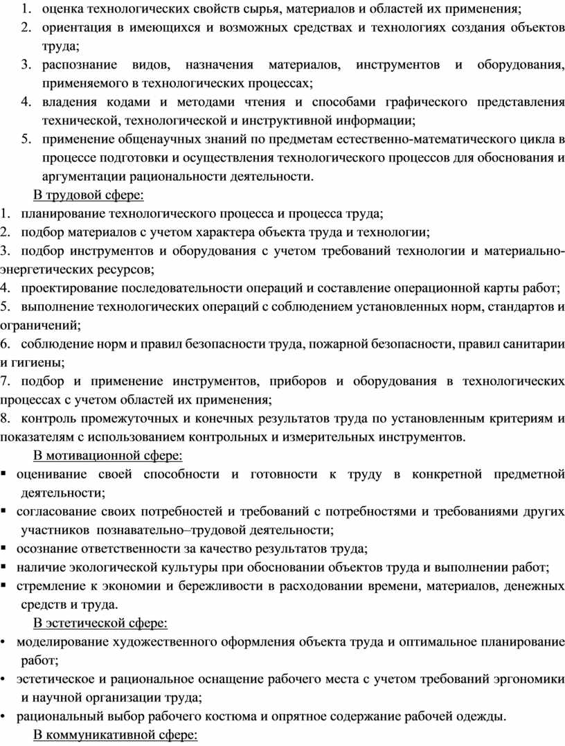 Ø проявление технико-технологического и экономического мышления при организации своей деятельности;
